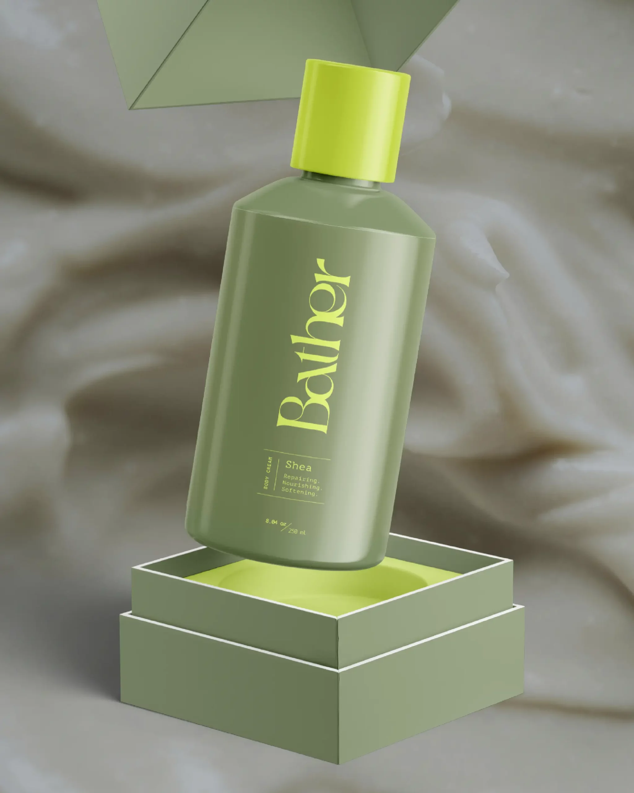 Identité visuelle et univers graphique pour Bather, une marque de soins corporels